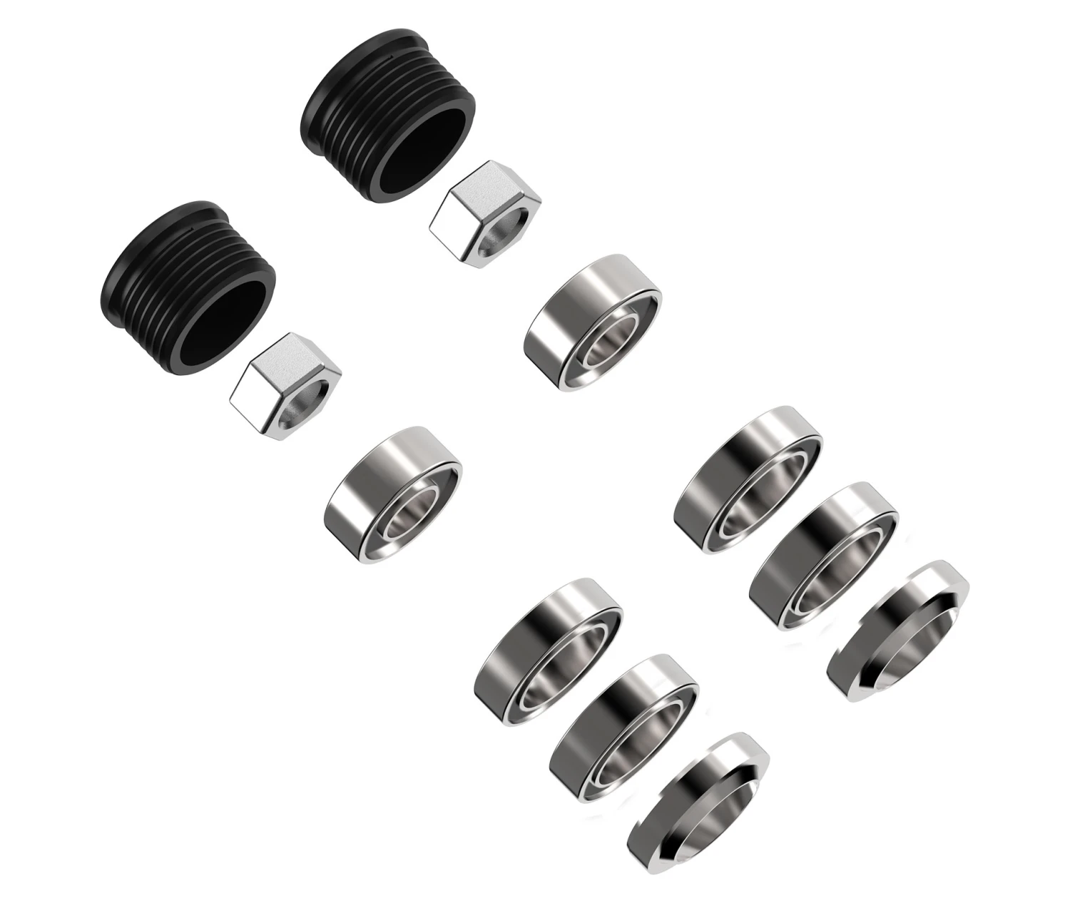 Favero bePRO Pedal – Lagerkit. Satz Lager, M6 Sechskantmuttern, Wellendichtring und Endkappe für die Favero bePRO-Pedalkörper links und rechts.