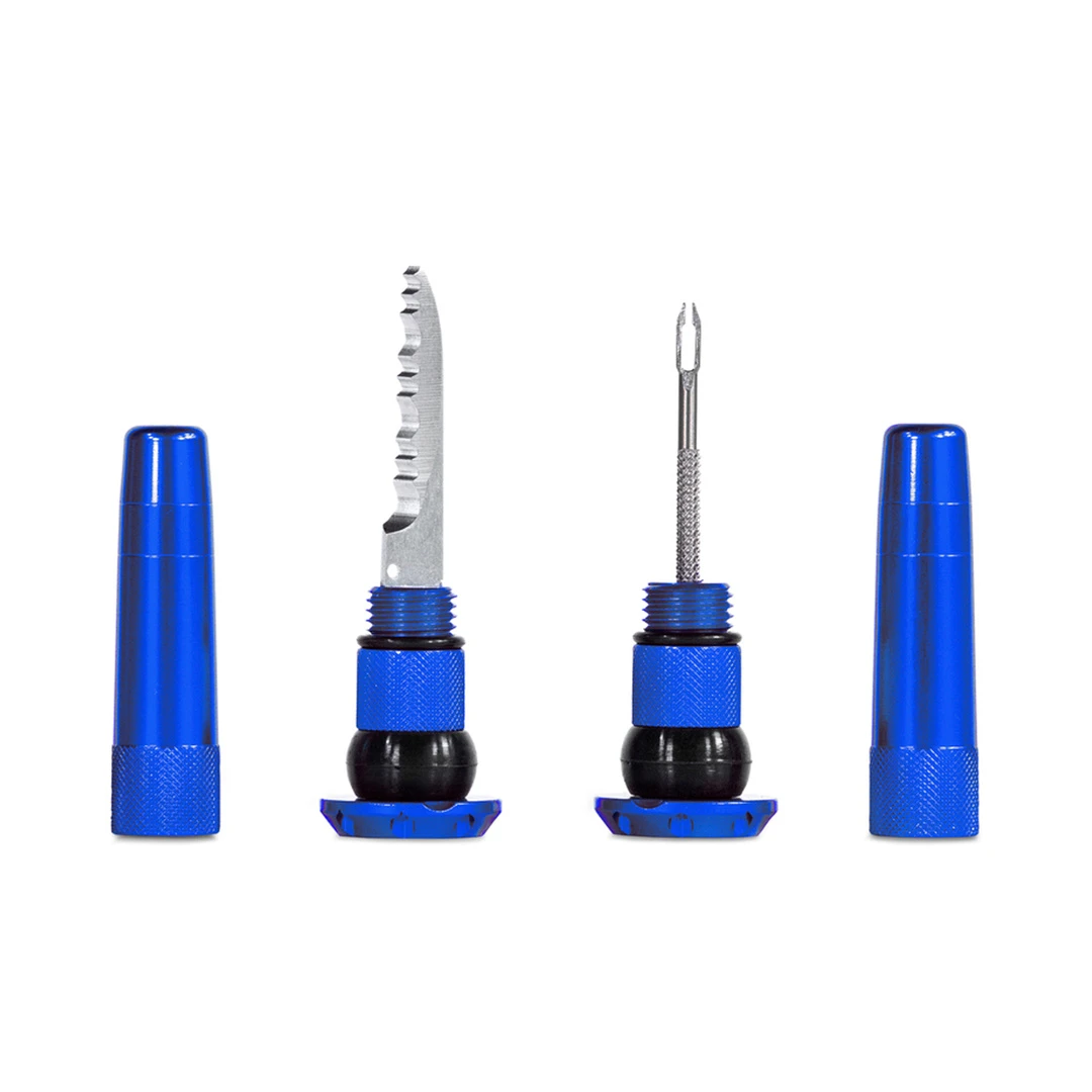 Jedes leichte und robuste Set enthält alles, was Sie brauchen, um wieder fahren zu können, wenn Sie mit einem Loch zu kämpfen haben, das sich einfach nicht schließen lässt: eine 2-in-1-Reibahle aus rostfreiem Stahl, eine Vielzahl von Reifenschnecken in verschiedenen Größen und ein Trimmmesser.