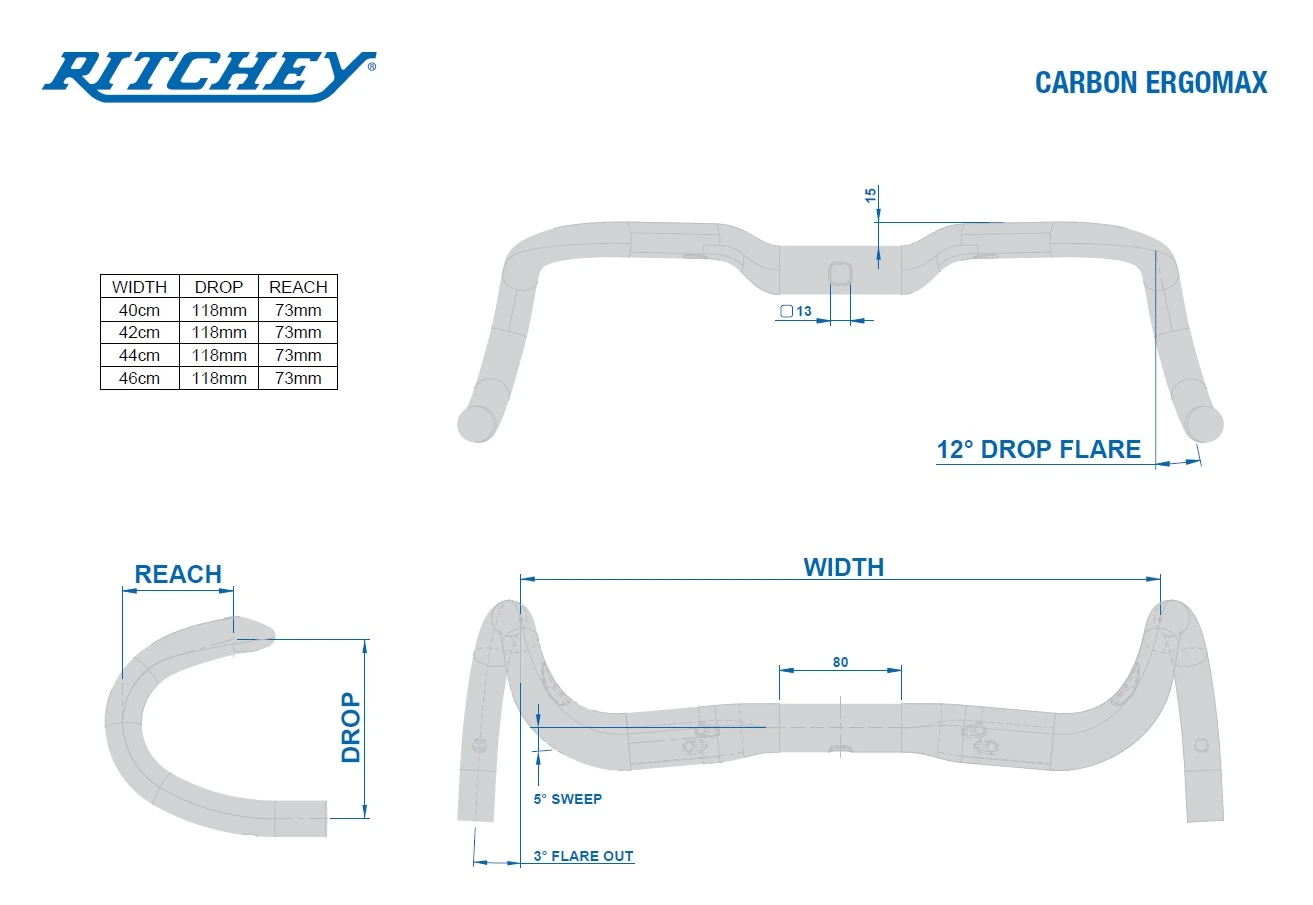 Wenn Tom Ritchey vor die Tür tritt und sich auf sein Fahrrad schwingt, hat er nur selten einen Plan für den Tag. Es kann sein, dass er sich direkt auf die Trails in der Nähe seines Hauses begibt, um einen Nachmittag lang Singletrails zu fahren, oder dass er mehrere Stunden lang auf einer zügigen Straßenfahrt unterwegs ist. Es ist auch gut möglich, dass er viel Zeit auf den Schotterstraßen verbringt, die seine Lieblingstrails mit langen Asphaltabschnitten verbinden. Um die Vorteile dieser vielfältigen Fahruntergründe voll ausschöpfen zu können, ist es wichtig, die richtigen Werkzeuge für diese Aufgabe zu haben. Das ist die Idee hinter dem Ritchey WCS Carbon ErgoMax Lenker. Wie der beliebte Original-ErgoMax wurde auch die neue WCS Carbon-Version dieses anpassungsfähigen Lenkers entwickelt, um die Kontrolle und den Komfort beim Fahren auf jedem beliebigen Untergrund zu verbessern. Der neue WCS Carbon ErgoMax ist ein idealer Lenker für Fahrten auf losem und schmutzigem Untergrund, da er die Hände in eine breitere, stabilere Position bringt, während sie sich in den Drops befinden. Er eignet sich aber auch perfekt für Rennradfahrer, die auf glattem, sauberem Asphalt unterwegs sind – seine Ergonomie bietet einen unvergleichlichen Komfort. Der 15-mm-Rise im Klemmbereich sorgt für eine etwas aufrechtere Fahrposition, während der 5°-Backsweep und die Ergo-Aero-Aufsätze die Ermüdung von Armen und Händen verringern. Der 12° Drop Flare hält die Hände des Fahrers in einer bequemen und selbstbewussten Position, während er gleichzeitig für etwas mehr Stabilität in Kurven oder bei Einsätzen aus dem Sattel sorgt. Und natürlich trägt die Kohlefaserkonstruktion des neuen ErgoMax dazu bei, Vibrationen auf der Straße (und auf Schotter) zu dämpfen, bietet eine interne Kabelführung und hält das Gewicht niedrig.